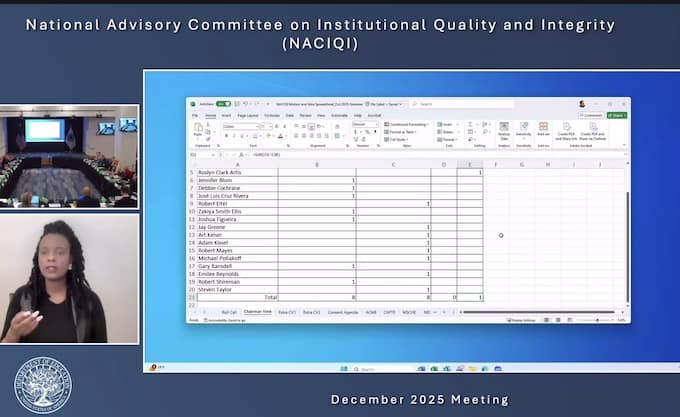 At the opening of today’s meeting of the U.S. Department of Education’s National Advisory Committee on Institutional Quality and Integrity (NACIQI), members of the panel have just reached a tie vote on the selection of a new chair. Zakiya Smith Ellis, a former New...